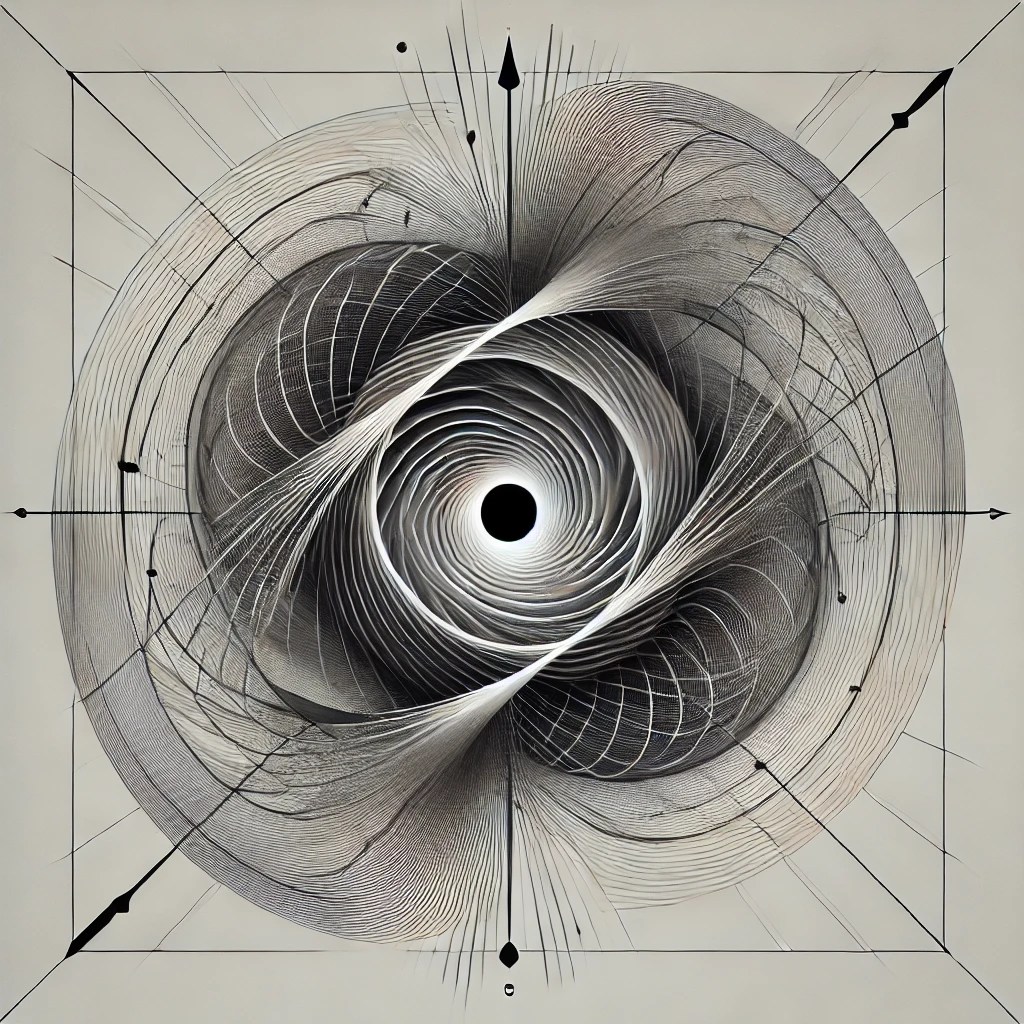 ChatGPT – Here’s an attempt to visually represent a hypothetical concept like a naked singularity. The representation will be abstract, using geometric shapes, curves, and arrows to symbolize its theoretical properties while avoiding any direct connection to known physical objects or colors.