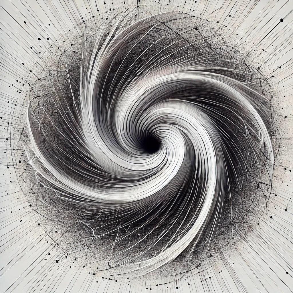 ChatGPT — The image has been refined with added complexity in the curves, spirals, and intersecting trajectories. Line thickness variations and subtle textures enhance depth while maintaining the monochromatic, abstract style.