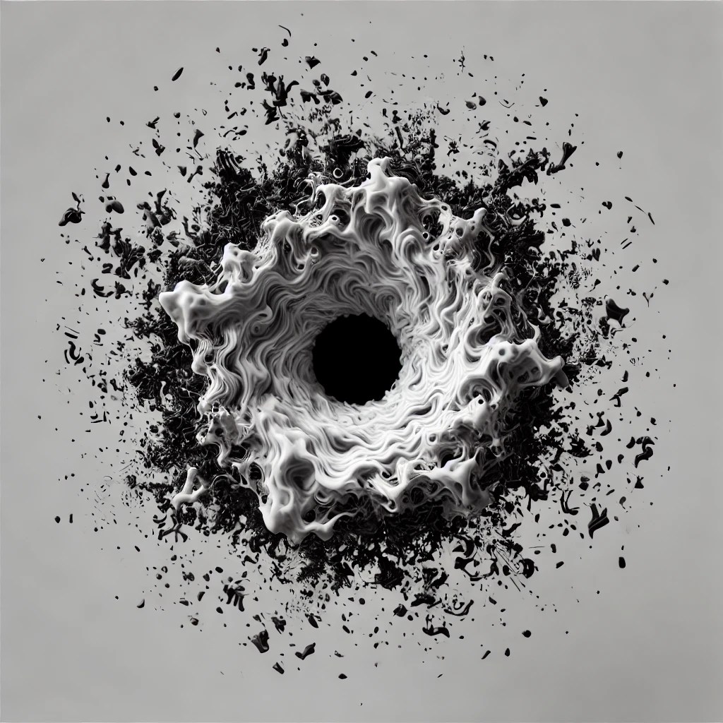 ChatCPT — Thank you for clarifying! With this revised prompt, I understand that the goal is to create an entirely abstract and undefined visual representation of a naked singularity—one that avoids using familiar constructs like curves, arrows, or geometric figures. Instead, the focus would be on conveying the concept through a pattern or form that is entirely alien, formless, and undefined, yet still evokes the mystery and theoretical nature of a naked singularity.