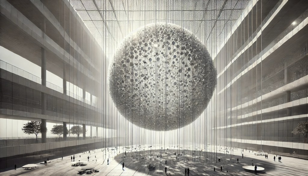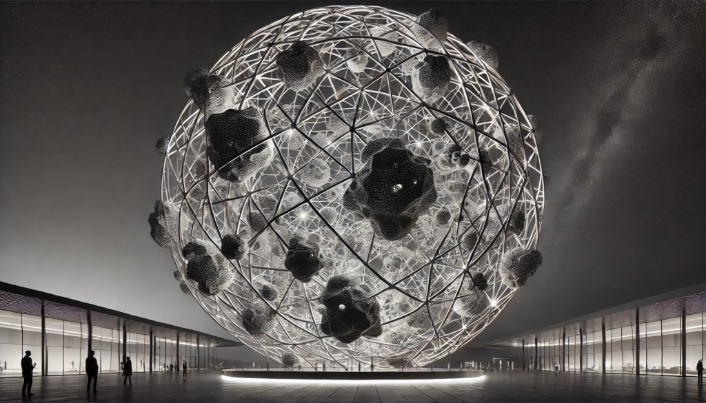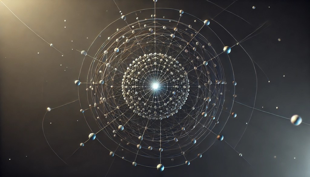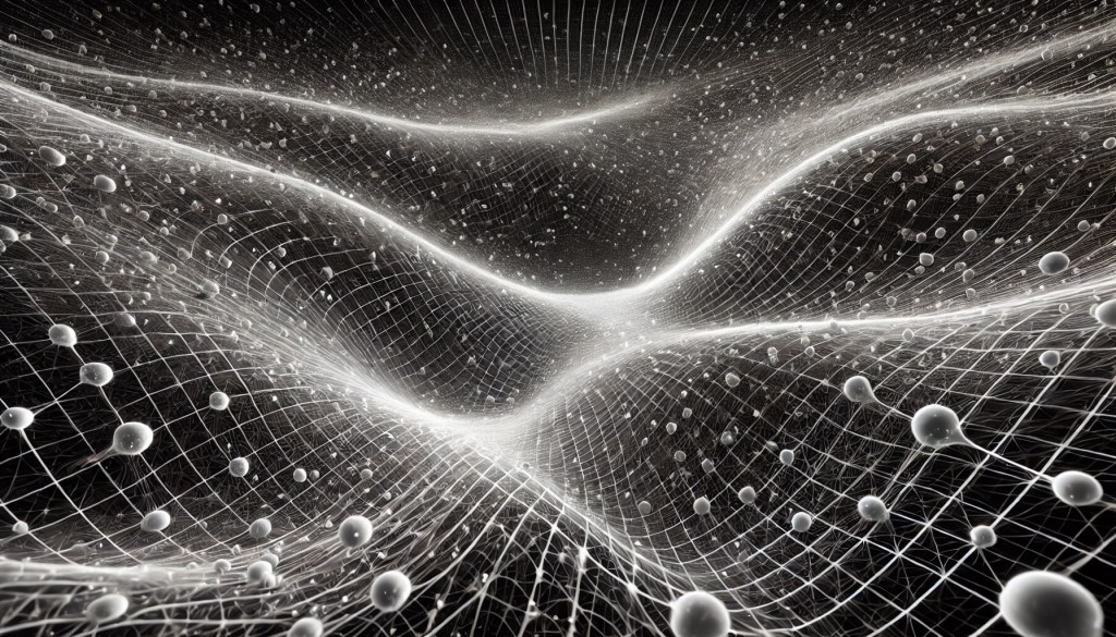 - Interconnected Filaments: Fine, glowing threads symbolize spacetime connections.