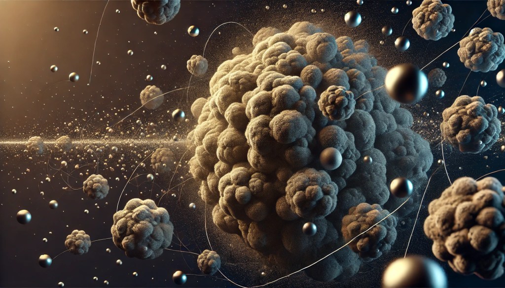 Me — Can you generate a granular representation of GSST in which stellar ‘grains’ appear more like sand grains or irregular asteroid forms than perfect spheres?